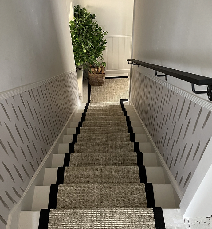 Today's post is all about how to update your stairs in creative and money-saving ways. A couple of years ago, I DIYed a stair runner using value runner rugs from a DIY store. The project went down a storm on social media so I wrote a step-by-step (no pun intended!) DIY tutorial of the process which is available over on my blog. see below for before & after pics...