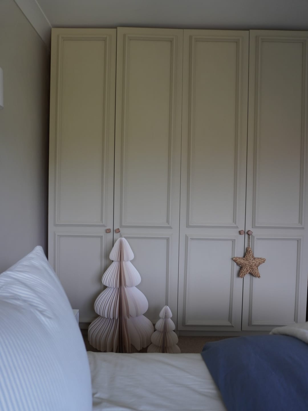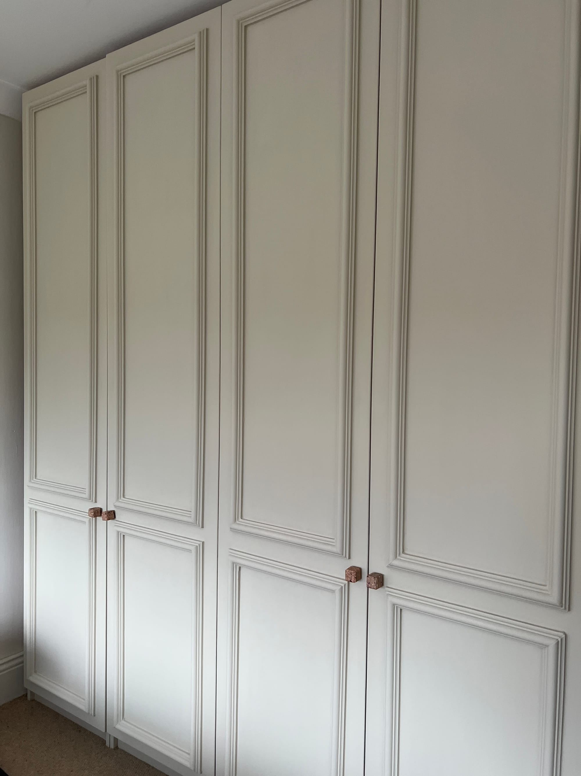 When we inherited these Ikea Pax wardrobes from our home's previous owners, I knew I wanted to do a little DIY to modernise them. To make the wardrobes chic, I added wainscoting style paneling and painted them a gorgeous beige.
