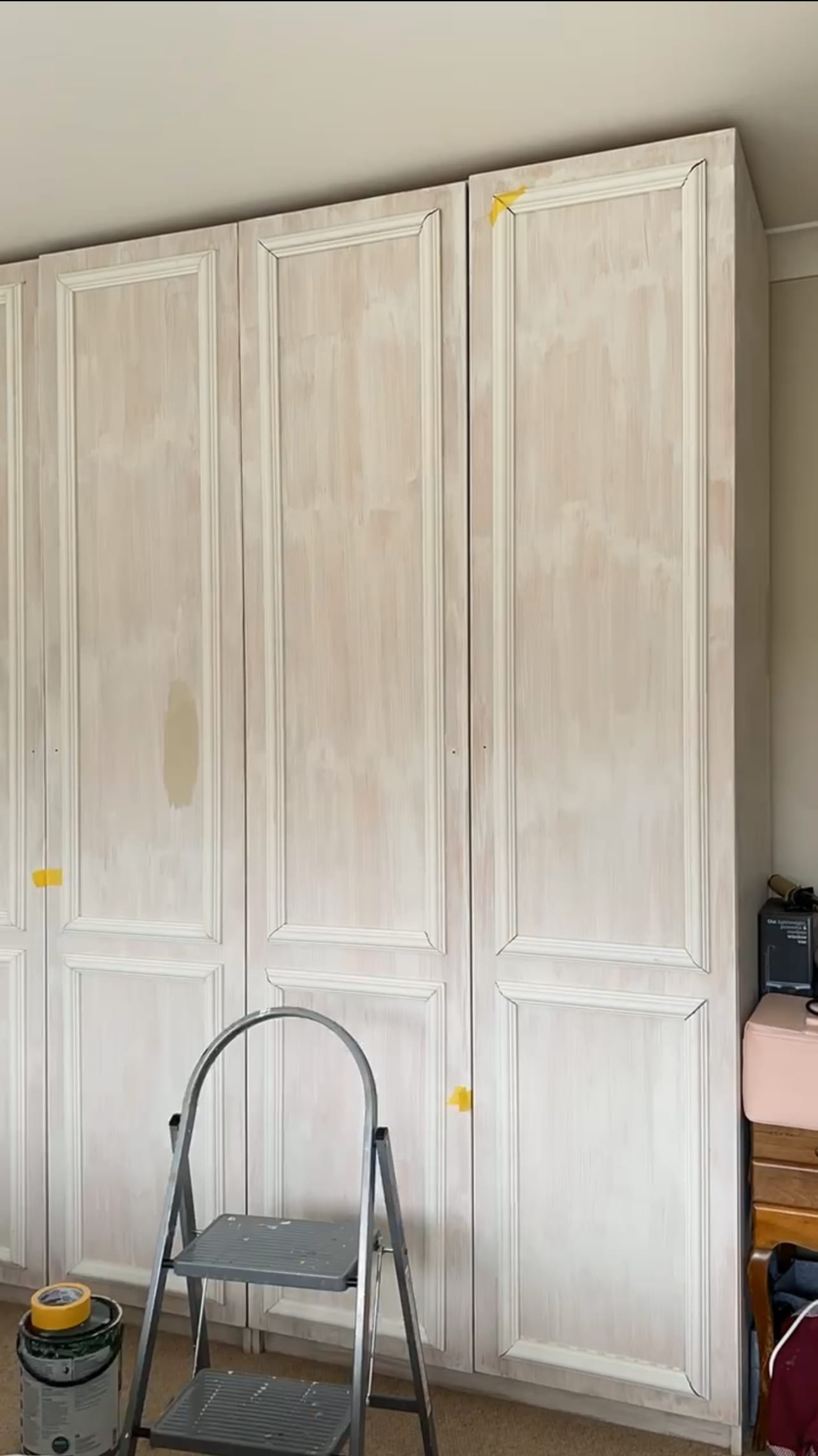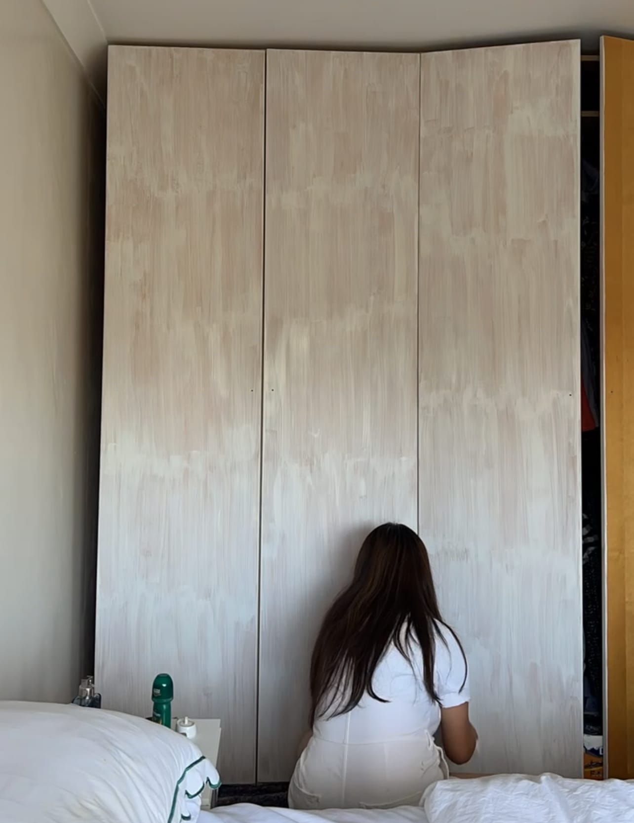 Then, I primed all the wardrobe units with Zinsser BIN primer. This primer’s been a lifesaver for me on laminated surfaces, so I knew it would work great here.