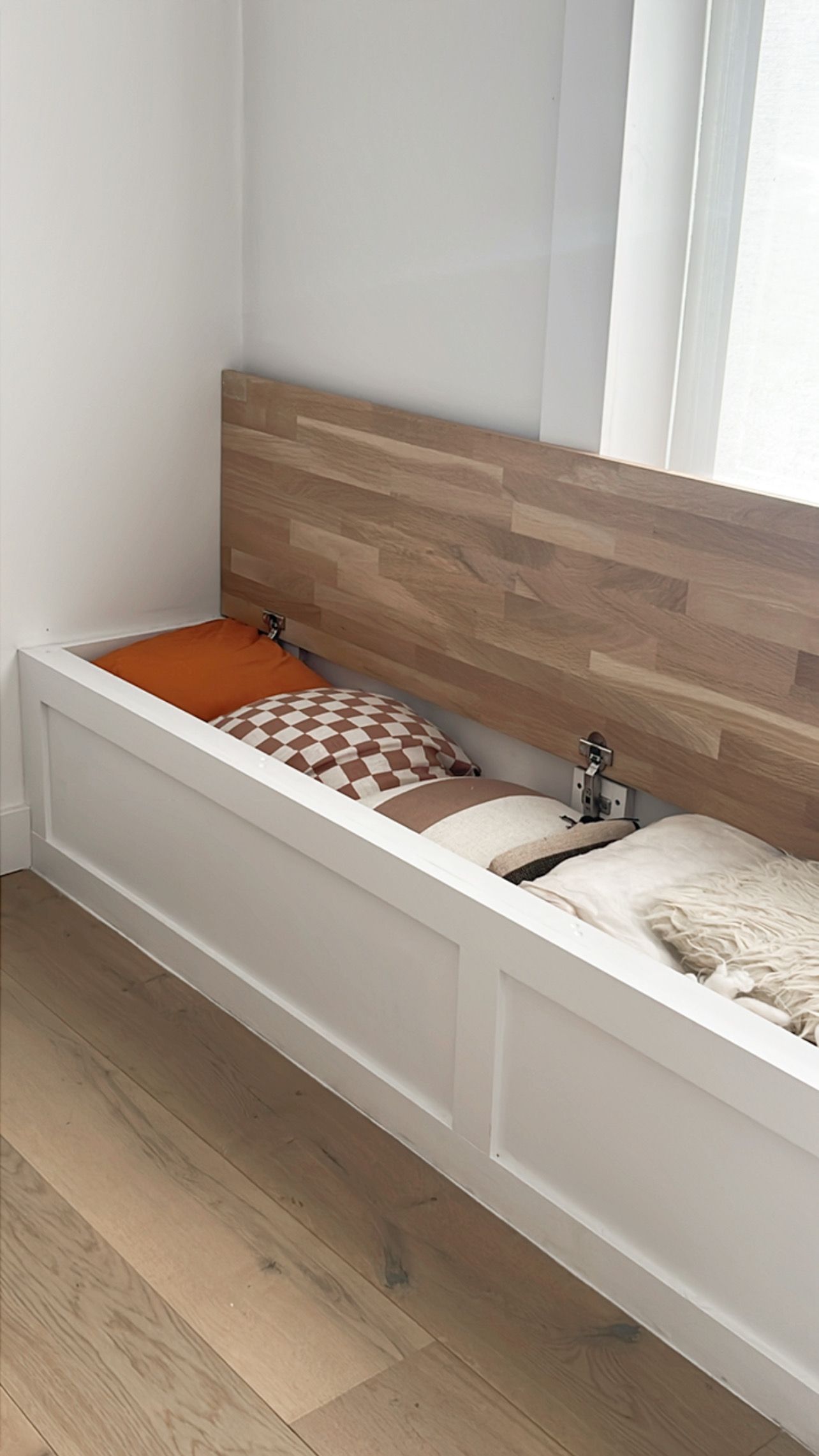 I really wanted a window seat in our lounge room so that I could use for storing cushions, throws and Magazines and books in there when not in use, so we set out to building this easy DIY under Bench Storage and seating, a relatively simple Diy, here I have taken a few photos to show you how simple it is to build one of these under your window or any space in your home.