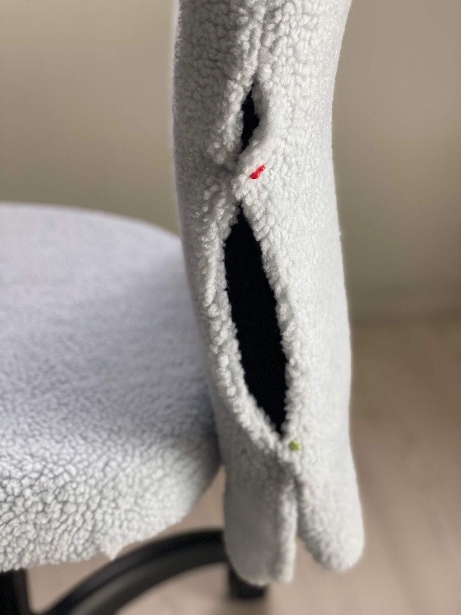 2. To make the piece of fabric that fits the seat back, I chose to attach a piece of fabric to the chair itself, and draw around.