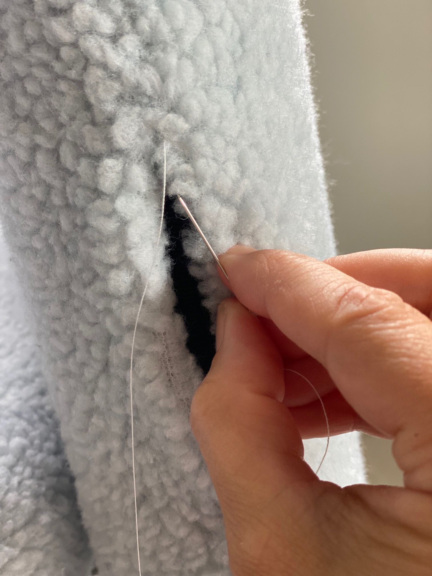 6. Then sew the last part, in my case I only sewed to where the back turns in, so that I could get the piece of fabric.
