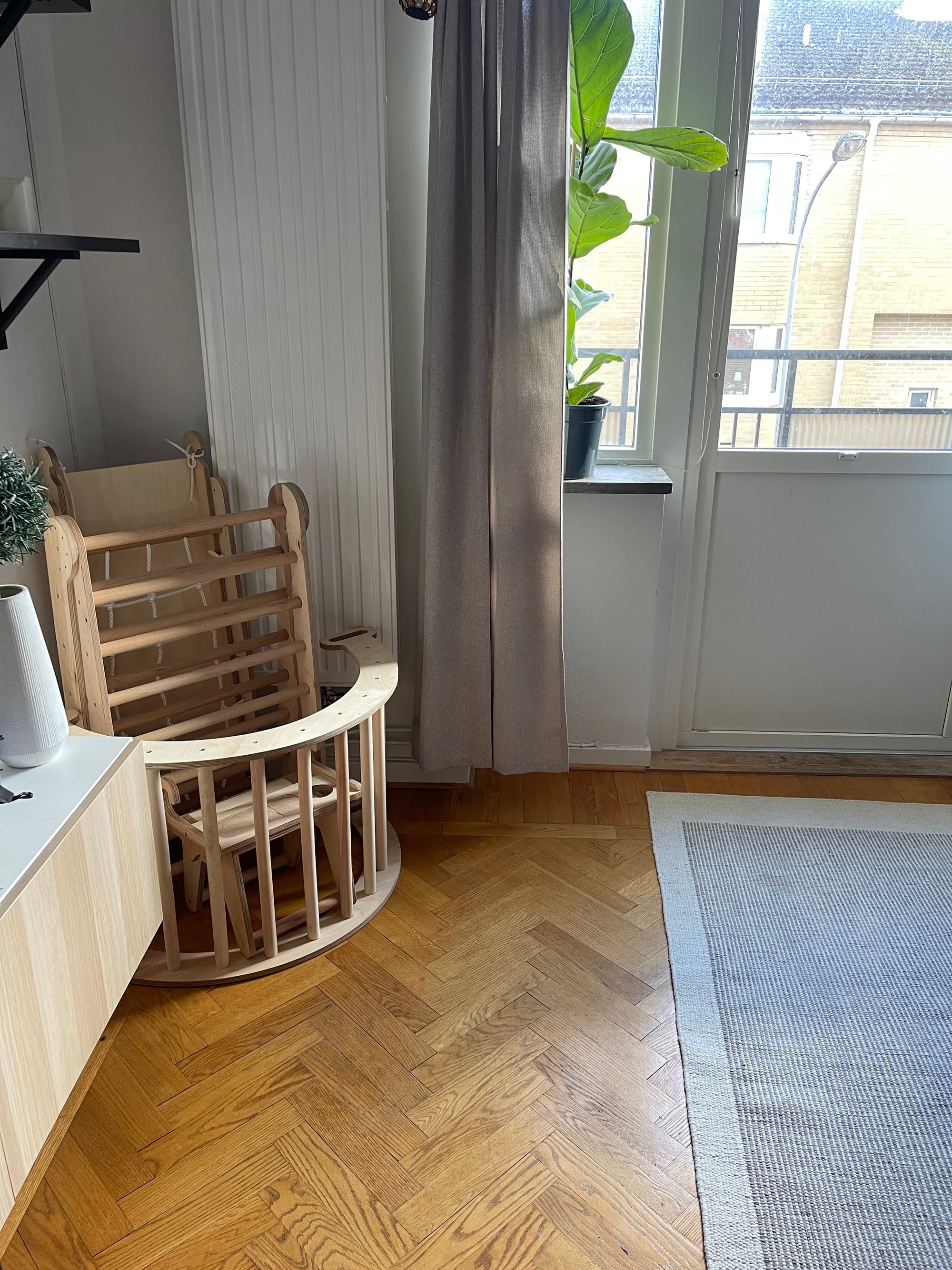 Elements like the triangle ladder were perfect early on for pulling up, cruising, and experimenting with balance. As our baby grows, the same exact pieces turn into more advanced climbing, sliding, rocking, and imaginative play setups. Nothing feels wasted.