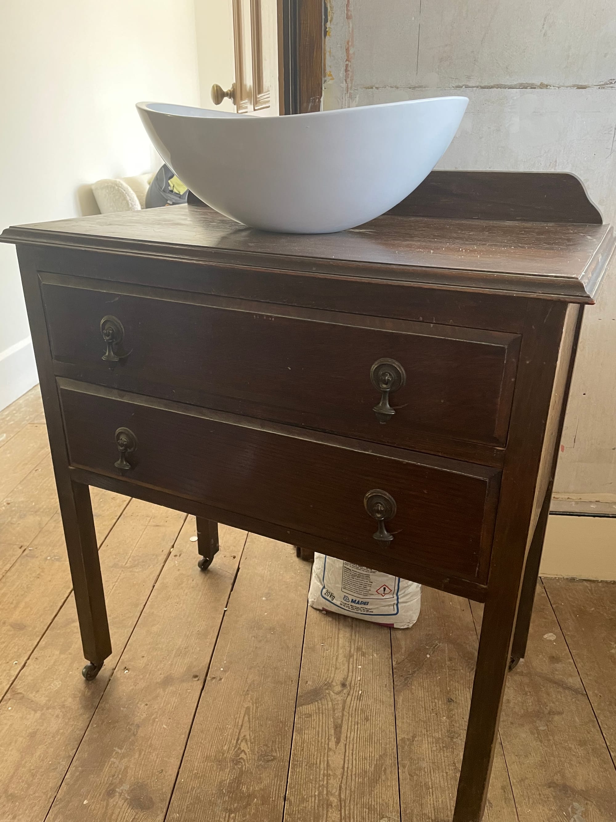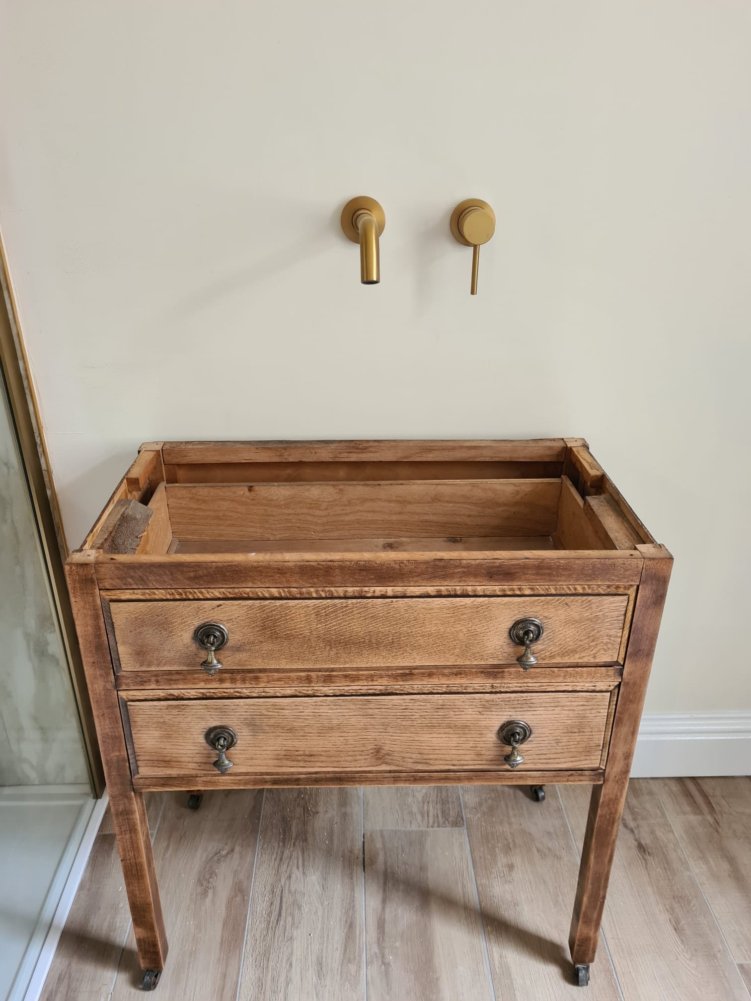 I spent time searching for a sideboard that would fit my limited bathroom space. Eventually, I found one that was just the right size for only £25!