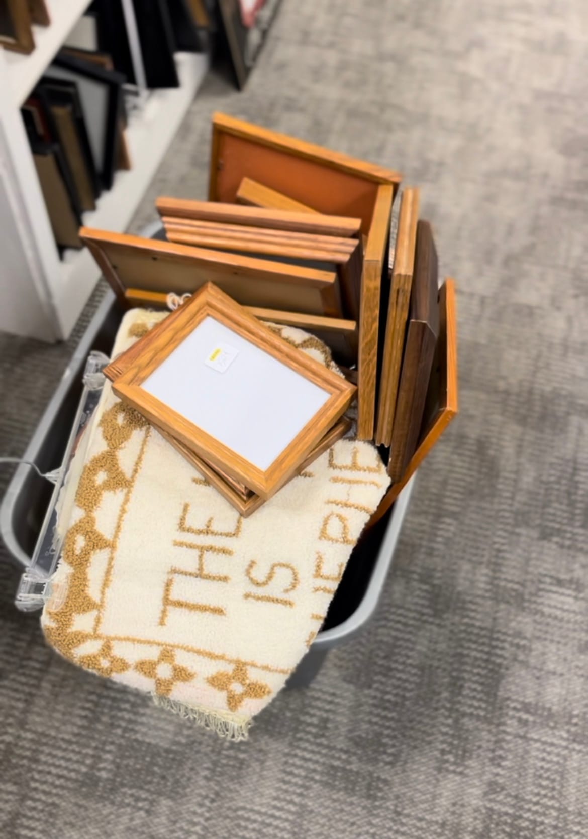 I ended up with a tub overflowing of nearly fifty frames in sizes 8x10 or 5x7. The 8x10 frames were fifty cents each, after the day's discount. The 5x7 frames were a quarter. My grand total for my entire gallery wall came in just under $25 for all of my frames. Every thrift store employee questioned my sanity for buying so many frames, but I was determined to make this vision come to life.
