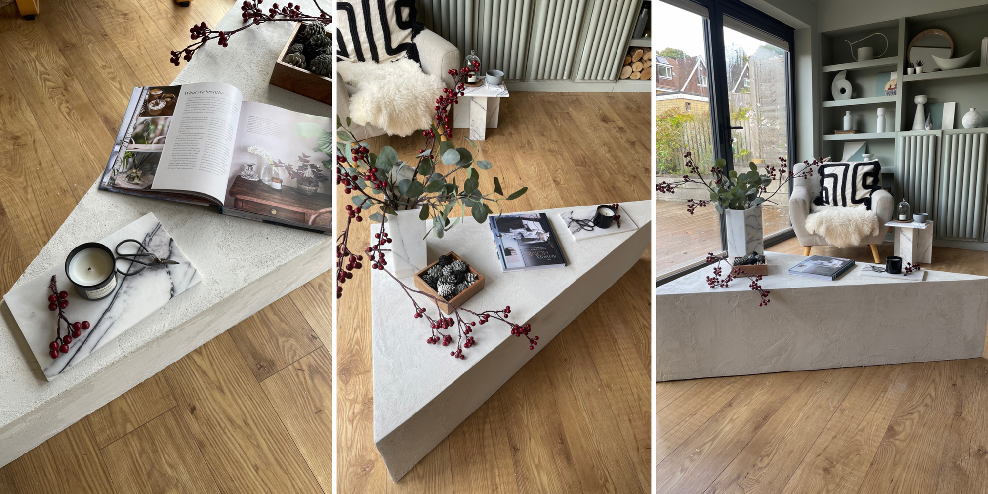 A Unique and Stylish DIY Project for Your Living Room using leftover plywood and micro-cement.