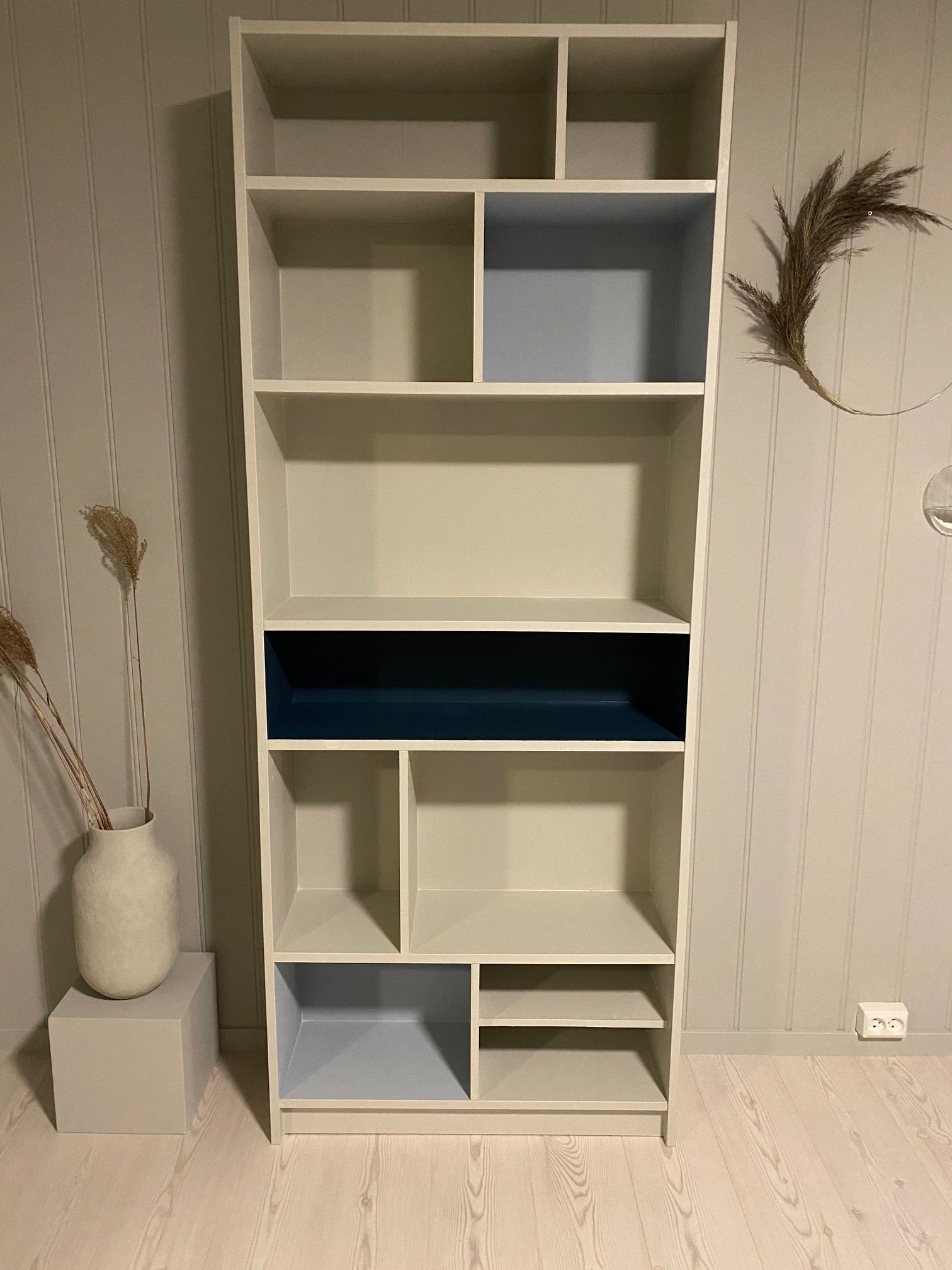 All you need is some paint and some extra shelves. Play around and create levels and rooms as you wish, feel free to paint them in slightly different colors to create some life. I used the same colors as I have in the rest of the house to create a connection.