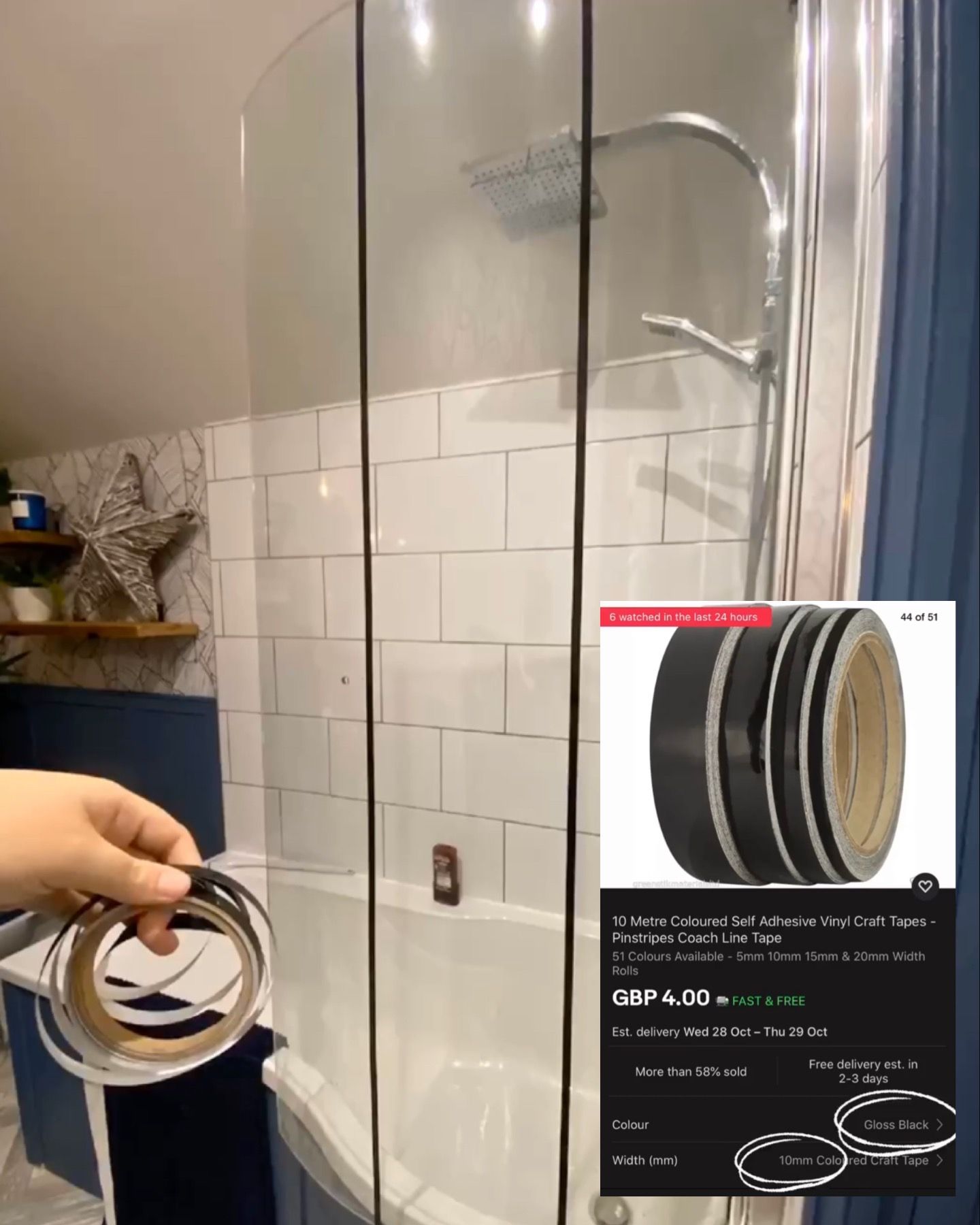 I wanted to a little something to the plain glass shower screen but didn't want it to be permanent as the style might go out of fashion.