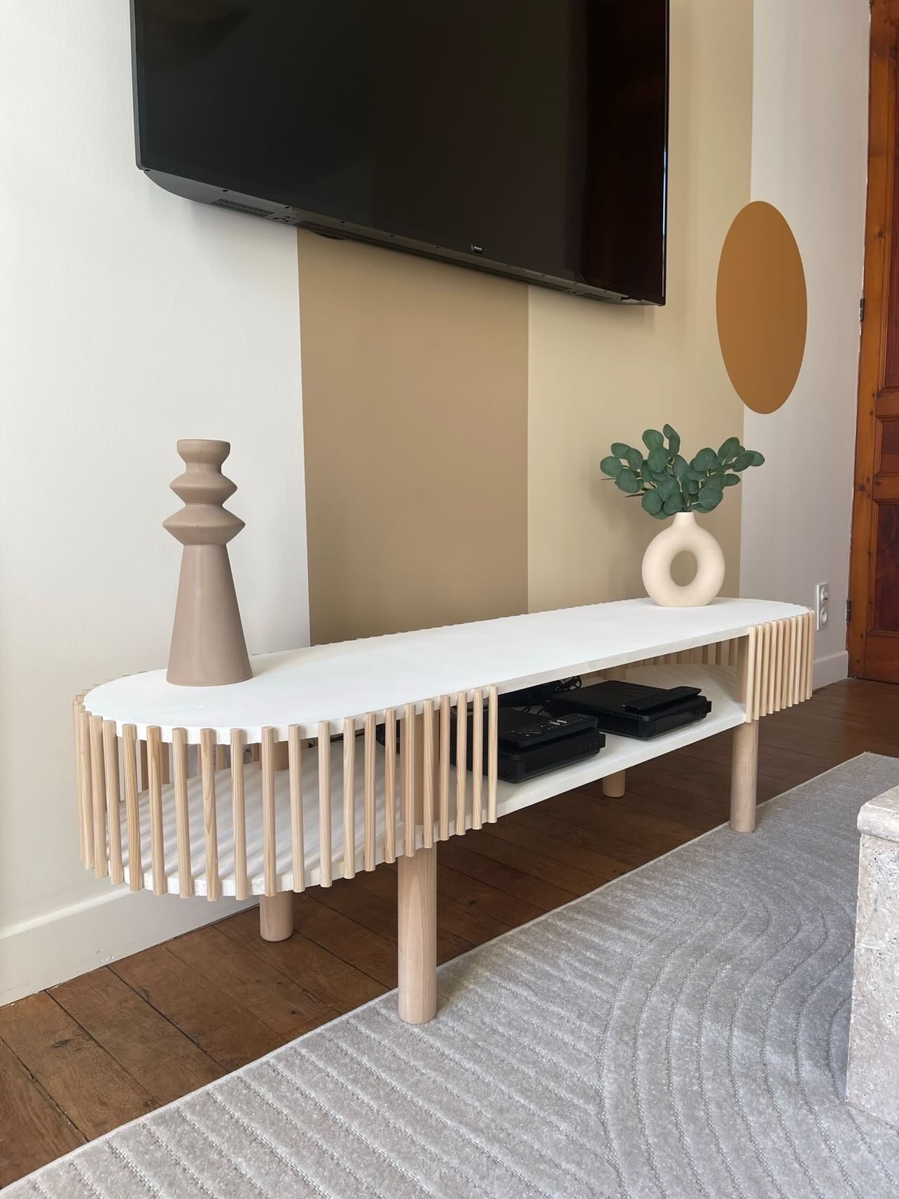 And voila! You now have a beautiful and functional rounded TV stand that you can be proud of. This project should cost you less than €115, making it an affordable option that won't break the bank.