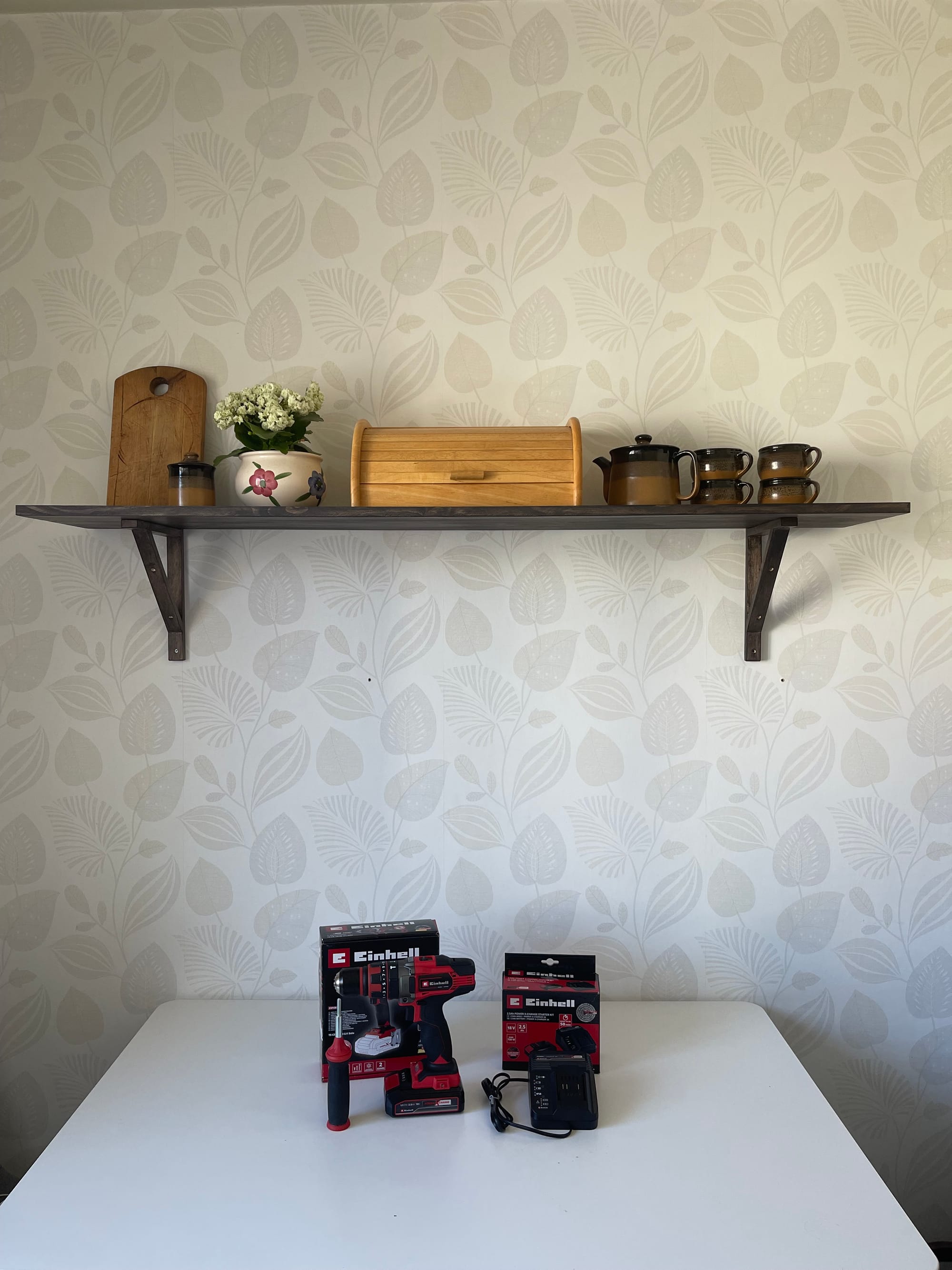 Ever looked at a blank wall and thought, “This space needs something”? That was us, not too long ago. We needed more space in our kitchen, because the table was always full of stuff and very messy, so a big shelf that could take away some of the stuff from the table and fill the wall seemed like the perfect solution. There was just one problem: we had never done something like it, and had no tools and no idea of how to do it.