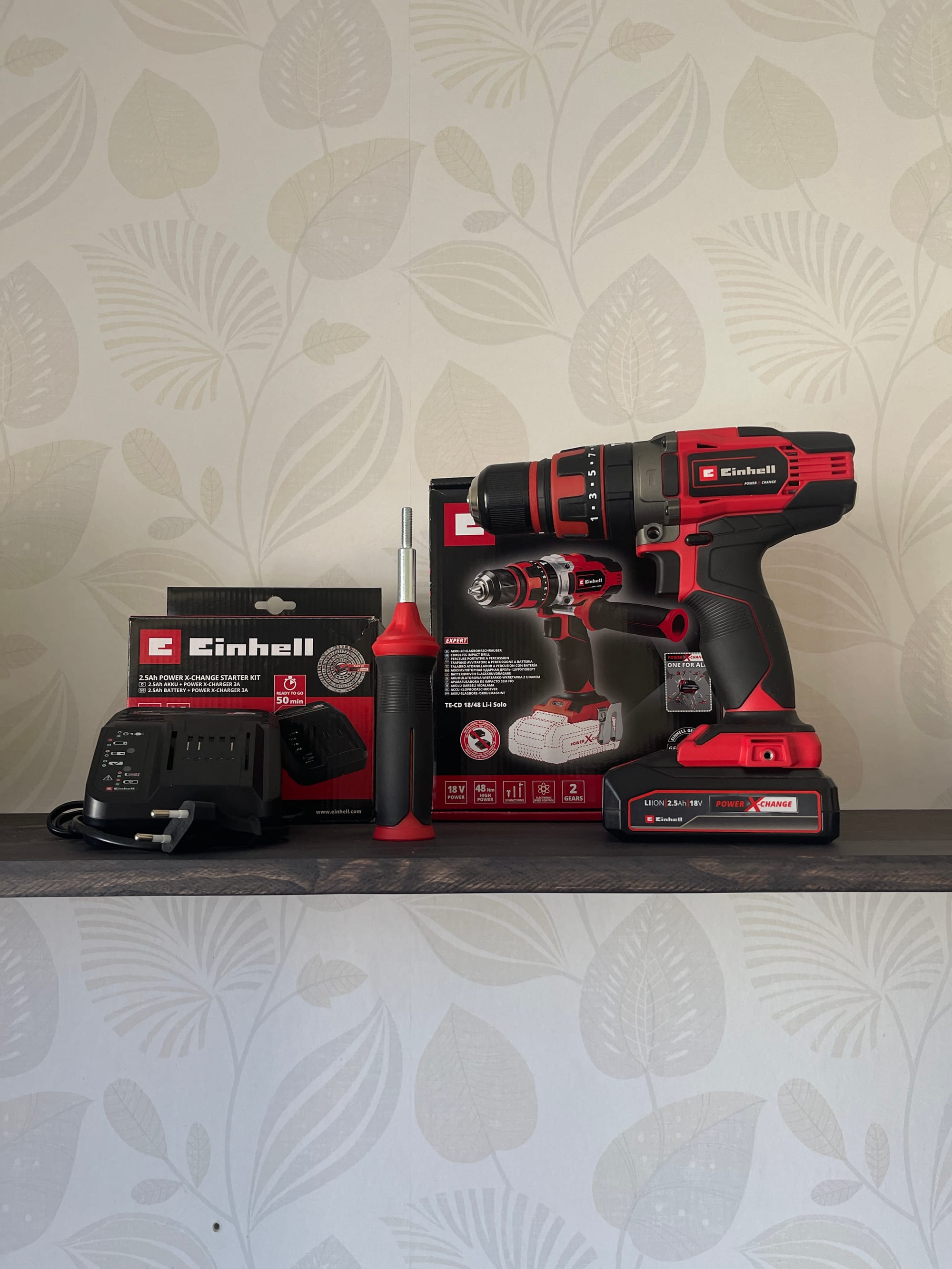 Before we started drilling or sanding, we needed to make sure the Einhell Power X-Change 18V Starter Kit battery was charged and ready to roll. Spoiler: it took almost no time. It charged up so fast, we didn’t even have time to procrastinate (or grab snacks). One battery, fully charged, powered the whole project without a hiccup (and as you will read, we ended up needing to use it to cover our hiccups) —no tangled cords, no hunting for outlets.