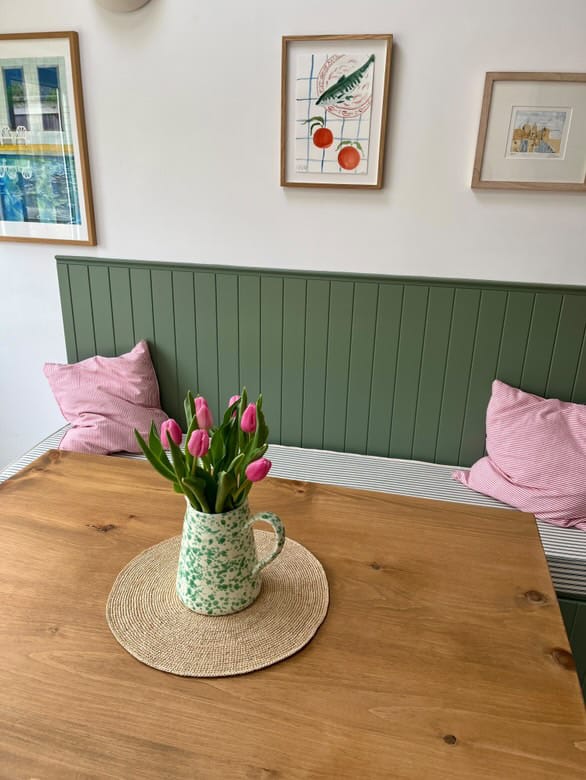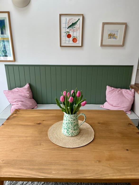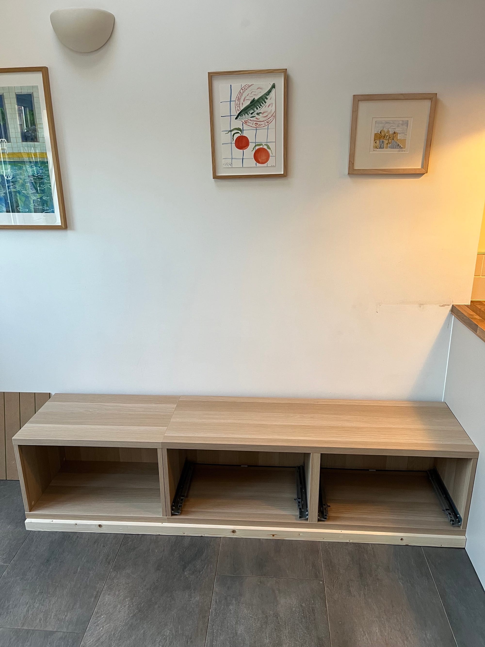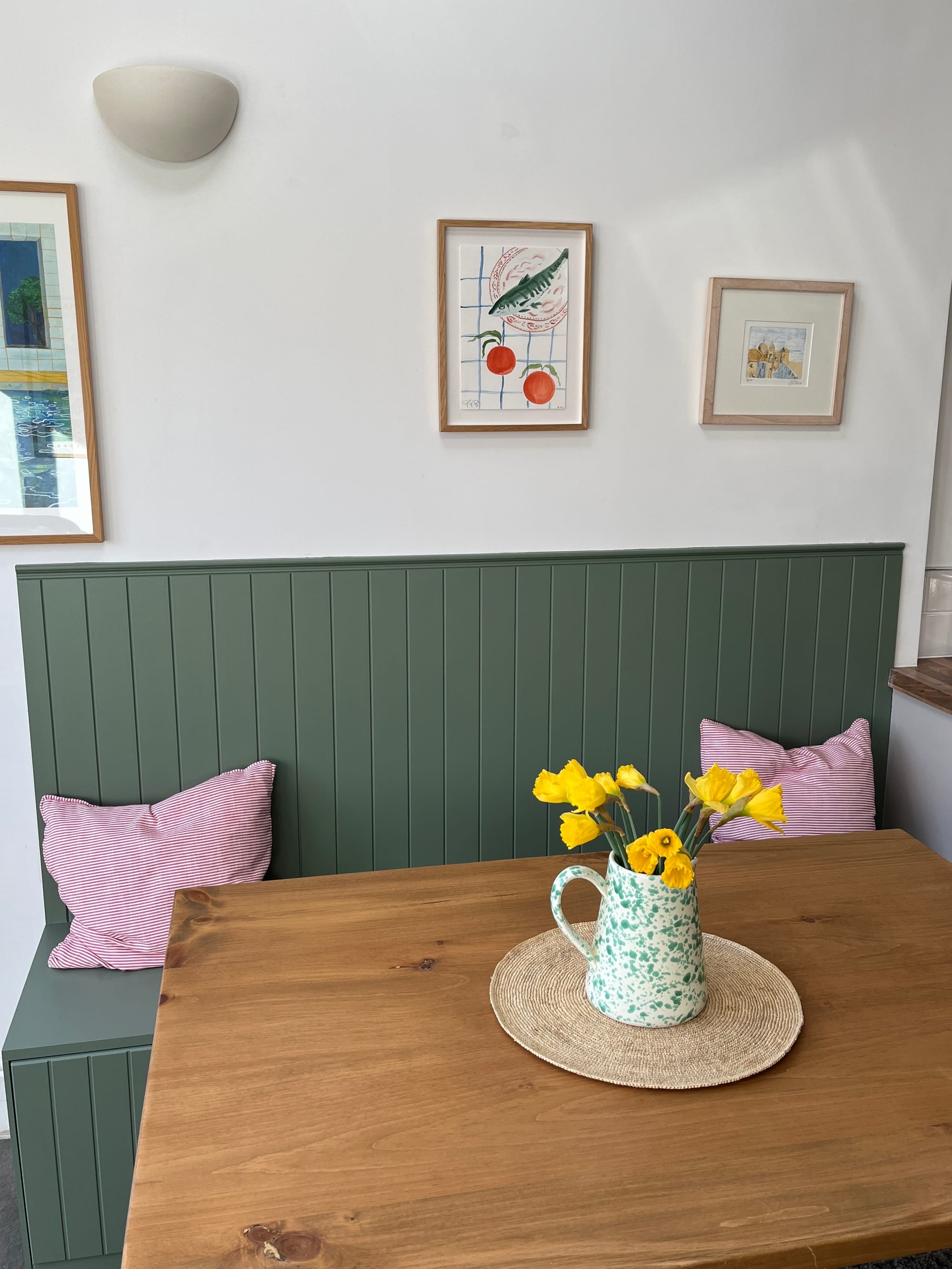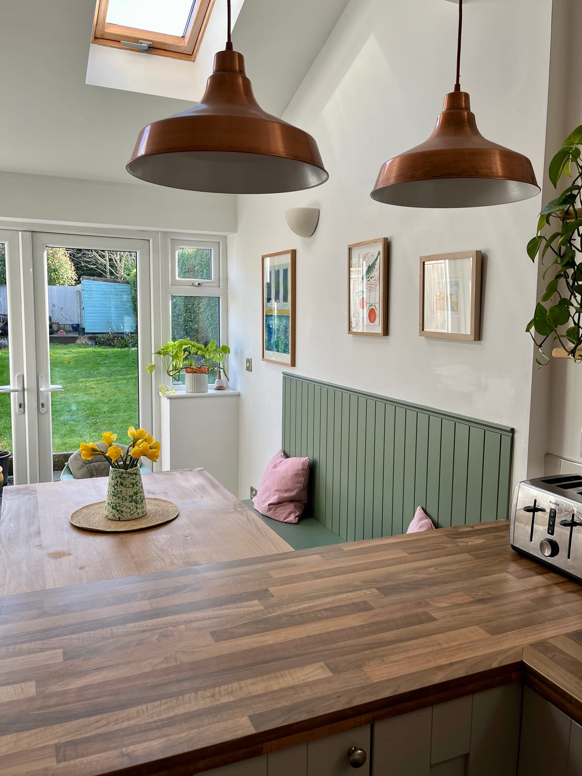 The small dining area at the end of our kitchen has always felt a little cramped, especially when we have guests round. We wanted to create a more comfortable dining area for our growing family, so at the end of last year we decided to cut back the rarely used breakfast bar to free up some additional space and give us room to create a built-in dining bench with some all important storage!