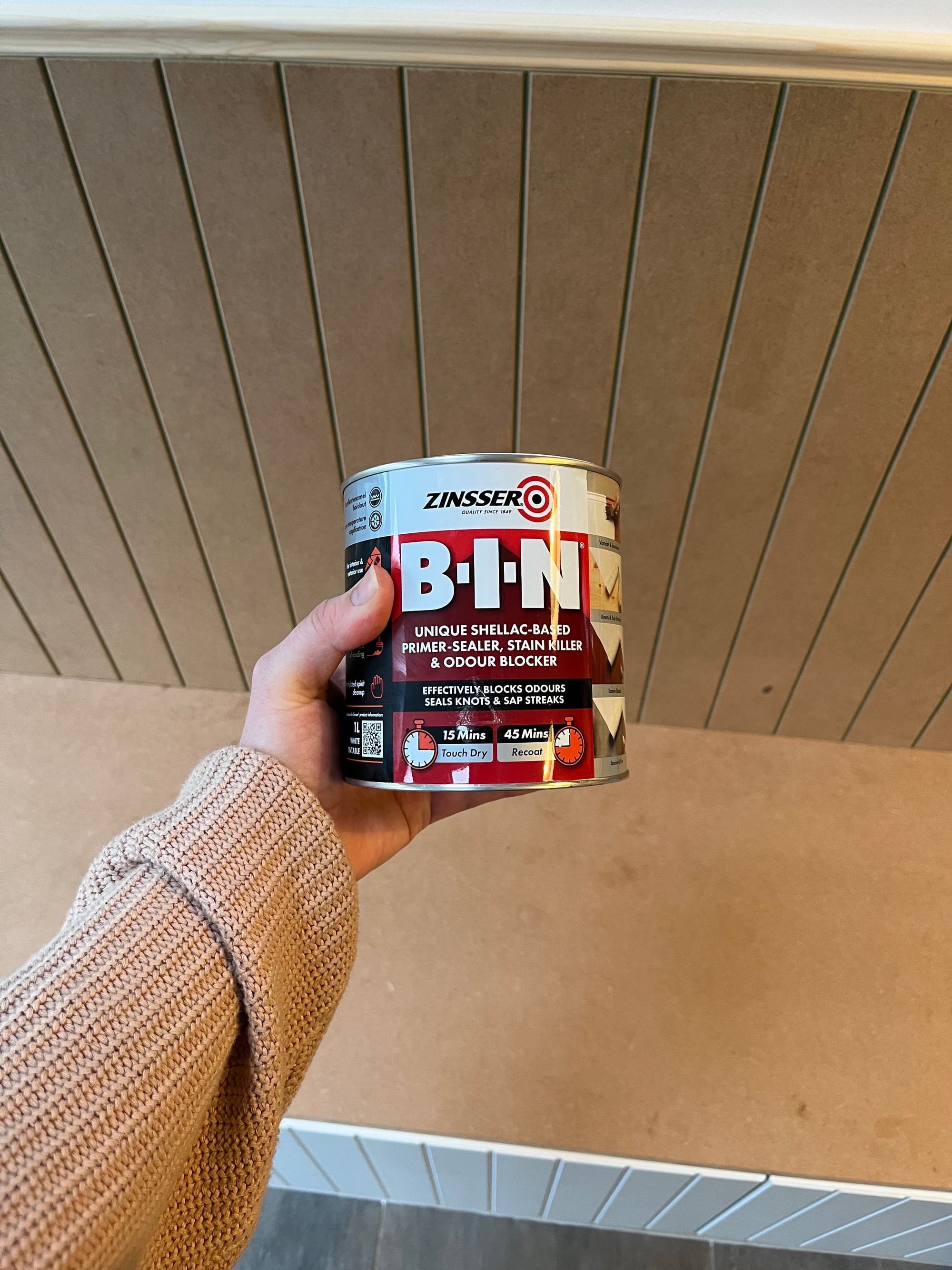 The next step was to caulk any gaps and prep the MDF and IKEA units for painting. I used Zinsser BIN primer, which came highly recommended, to create a good base for the paint to stick to (especially important on the IKEA laminate surfaces!) I allowed the primer to cure for a day or two before painting.