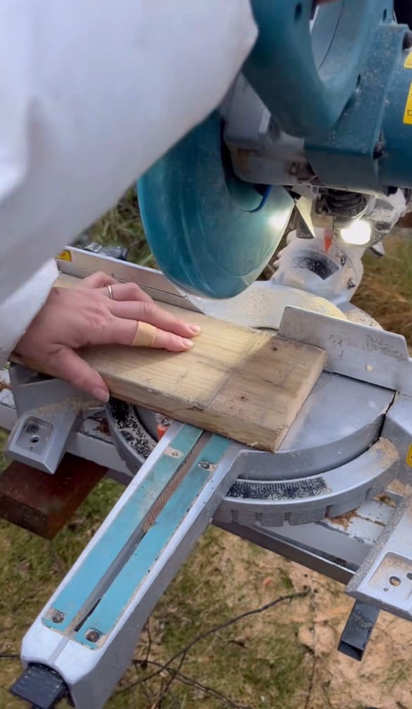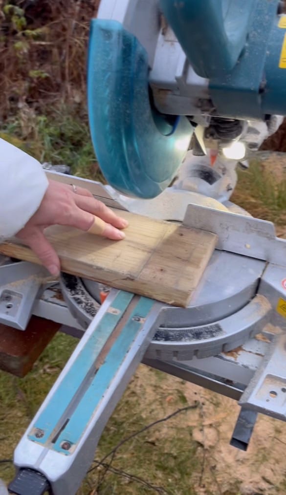 Split the deck boards to your desired width (approx. 5.5 cm). Then cut the planks to the specified lengths, ensuring the angles match (45° for the top, 22.5° for the others).