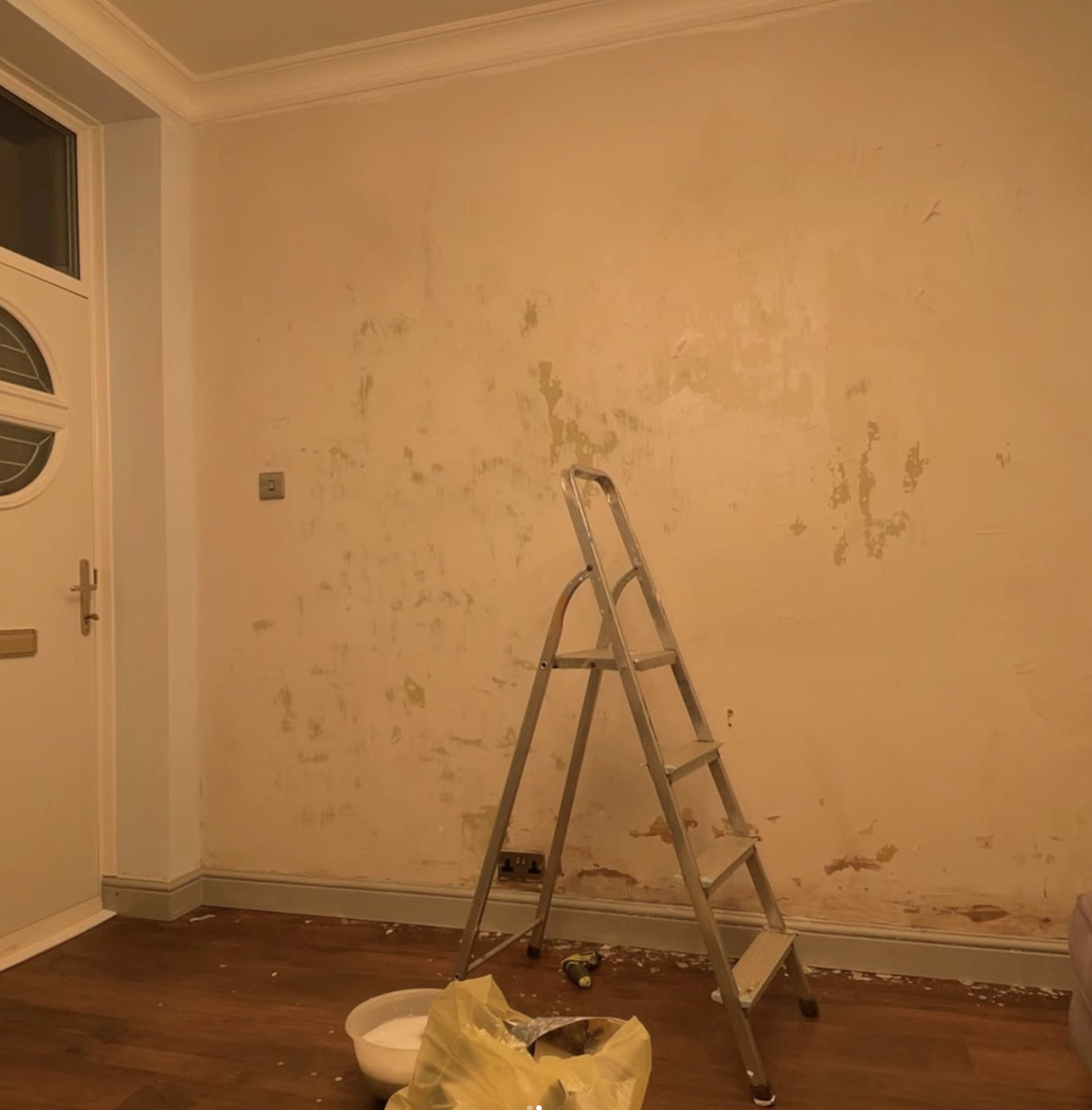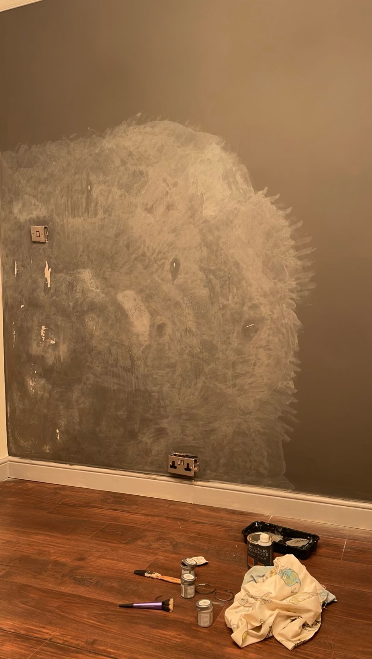 Firstly I stripped off the wallpaper, remember to use sugar soap to clean the wall afterwards as your paint wont adhere to the wall.
