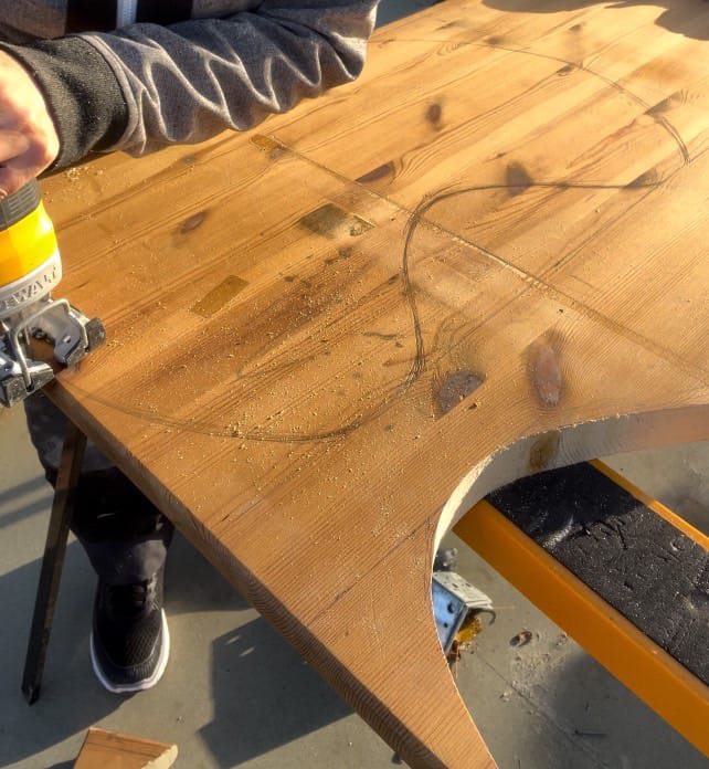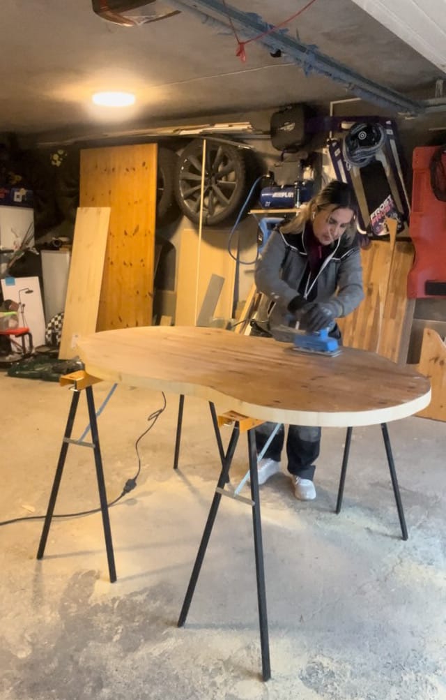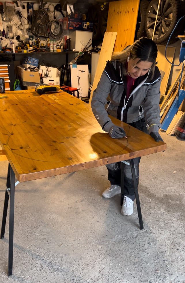 With my design finalized, I carefully cut the tabletop to the desired shape. This part can be a bit tricky, so take your time and follow your sketch closely.