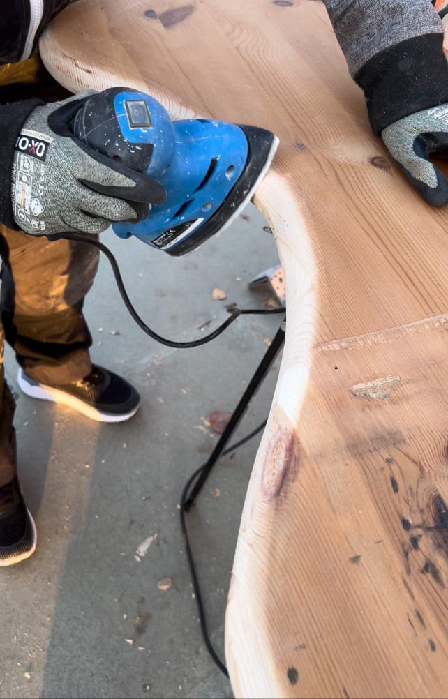 Next, I sanded the tabletop thoroughly, focusing on both the surface and edges. This step is crucial to achieve a smooth and refined finish that highlights the wood’s natural beauty. Sanding also prepares the wood for any finishing touches you might want to add later.