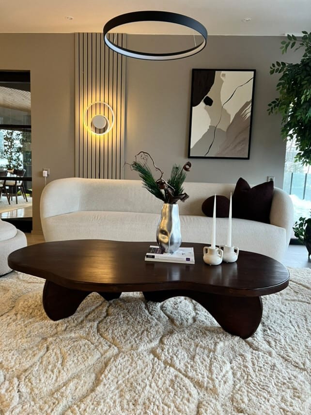 For the legs, I wanted to create a sense of dynamism. I designed two legs in different sizes, each with an organic shape to complement the tabletop. The legs can be positioned in various ways beneath the table, but I settled on an arrangement that gives the table a unique balance and distinct character.