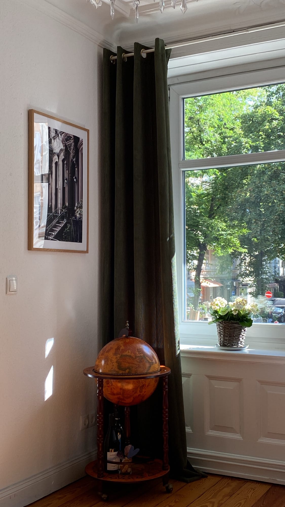 The power of decoration is very underestimated. Thoughtful decor can truly round off any room, add character and make it feel special. I love to incorporate my favourite coffee table books, which not only serve as conversation starters but also add a touch of personality to the space. Vases filled with fresh flowers bring life and color, while candles create a warm and inviting atmosphere. One of my favourite pieces is my globe-shaped mini bar - a functional yet unique statement piece that sparks curiosity. Together, these elements transform a simple room into a curated haven, reflecting individuality and inviting warmth and connection.