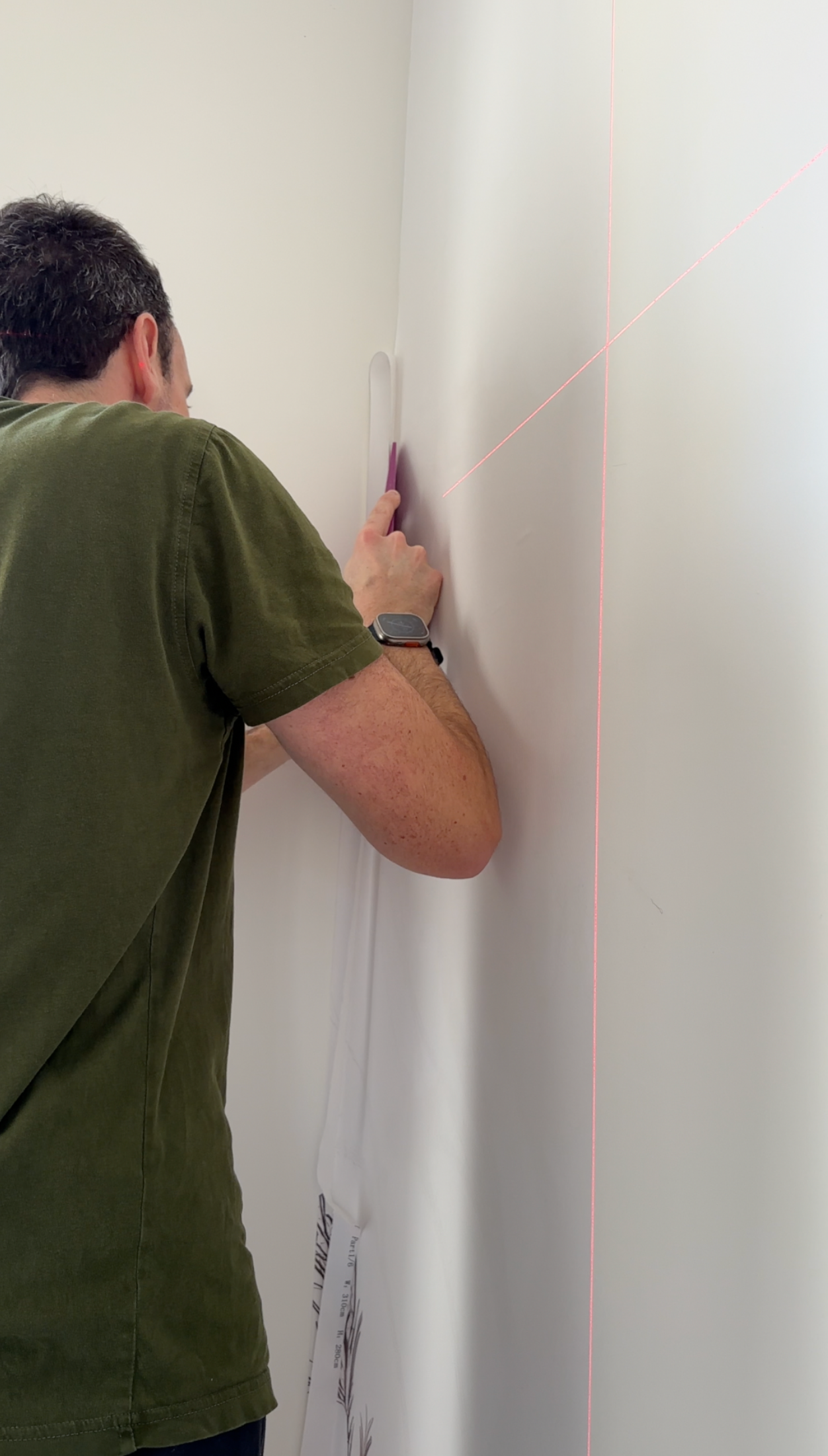Starting straight is key! We used a laser level to position our first strip perfectly. This step sets the foundation for the rest, so take your time to get it right. Once the first strip was in place, we kept rolling (literally!). We carefully lined up each new strip, smoothing as we went to make sure everything matched up perfectly.