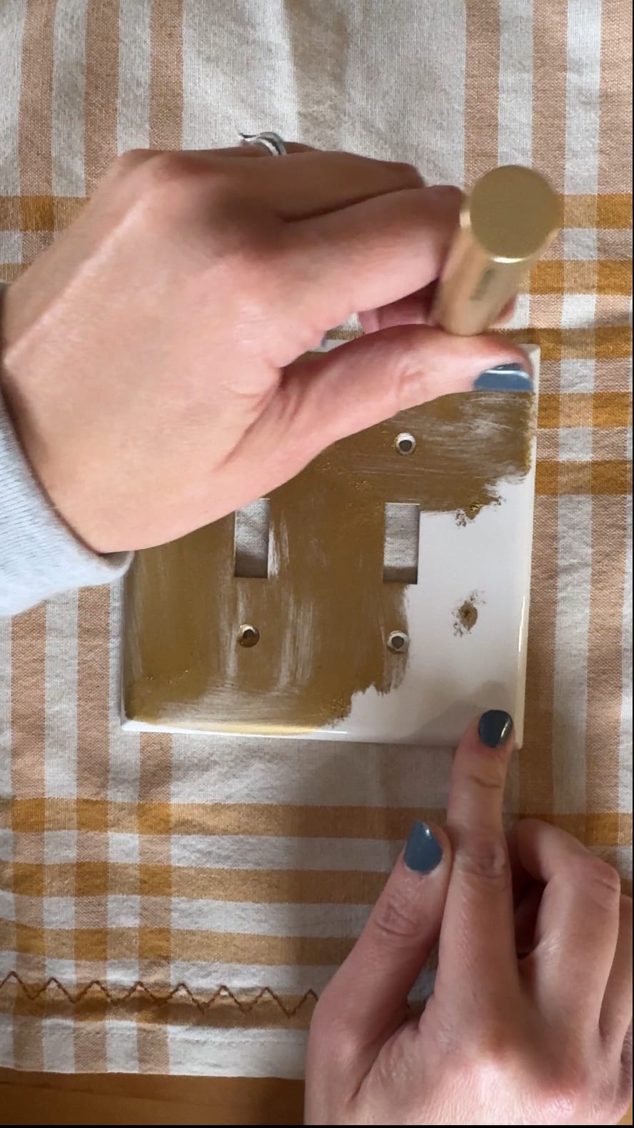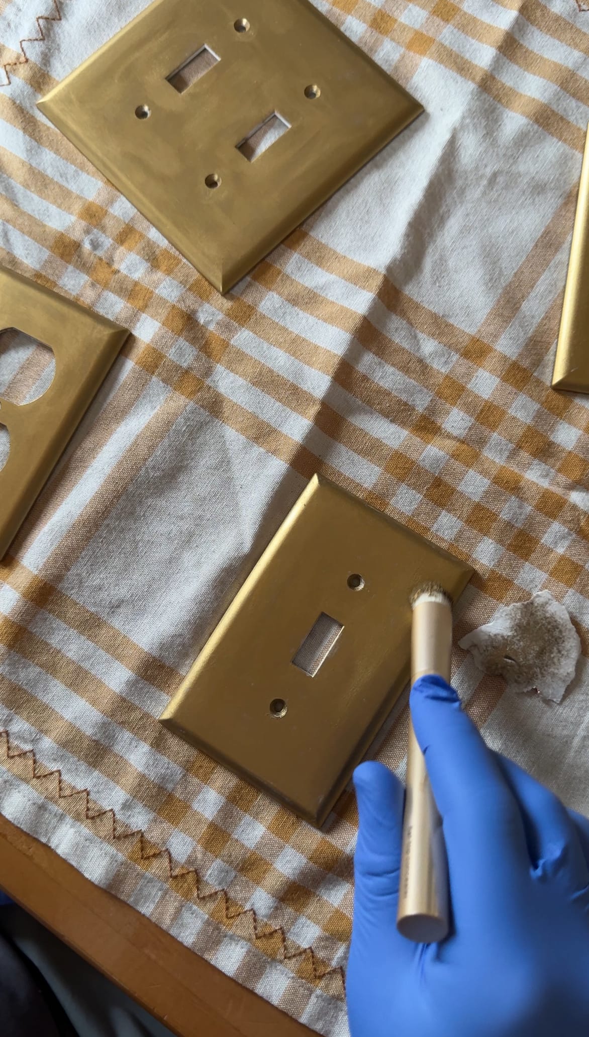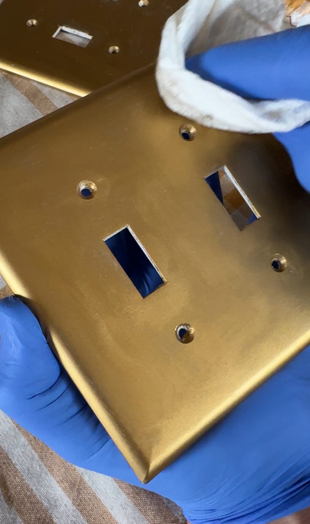 Once coated, I set the switch plates aside to dry. Although Rub 'n Buff® dries relatively quickly (in about an hour), leaving them overnight ensures a fully set finish.