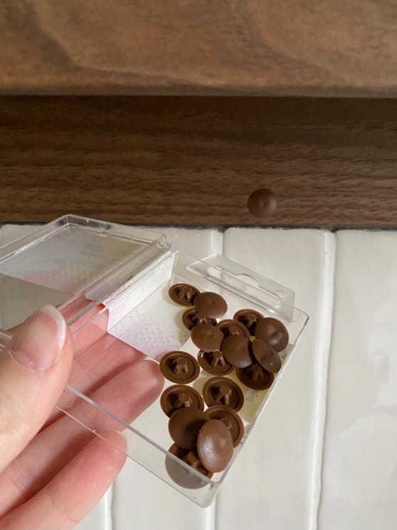 Once the shelves are secured, the screw holes remain visible. While IKEA includes stickers to cover them, I found that they don’t adhere well over time. Instead, I purchased screw covers and glued them into place with a bit of sealant for a more durable solution.