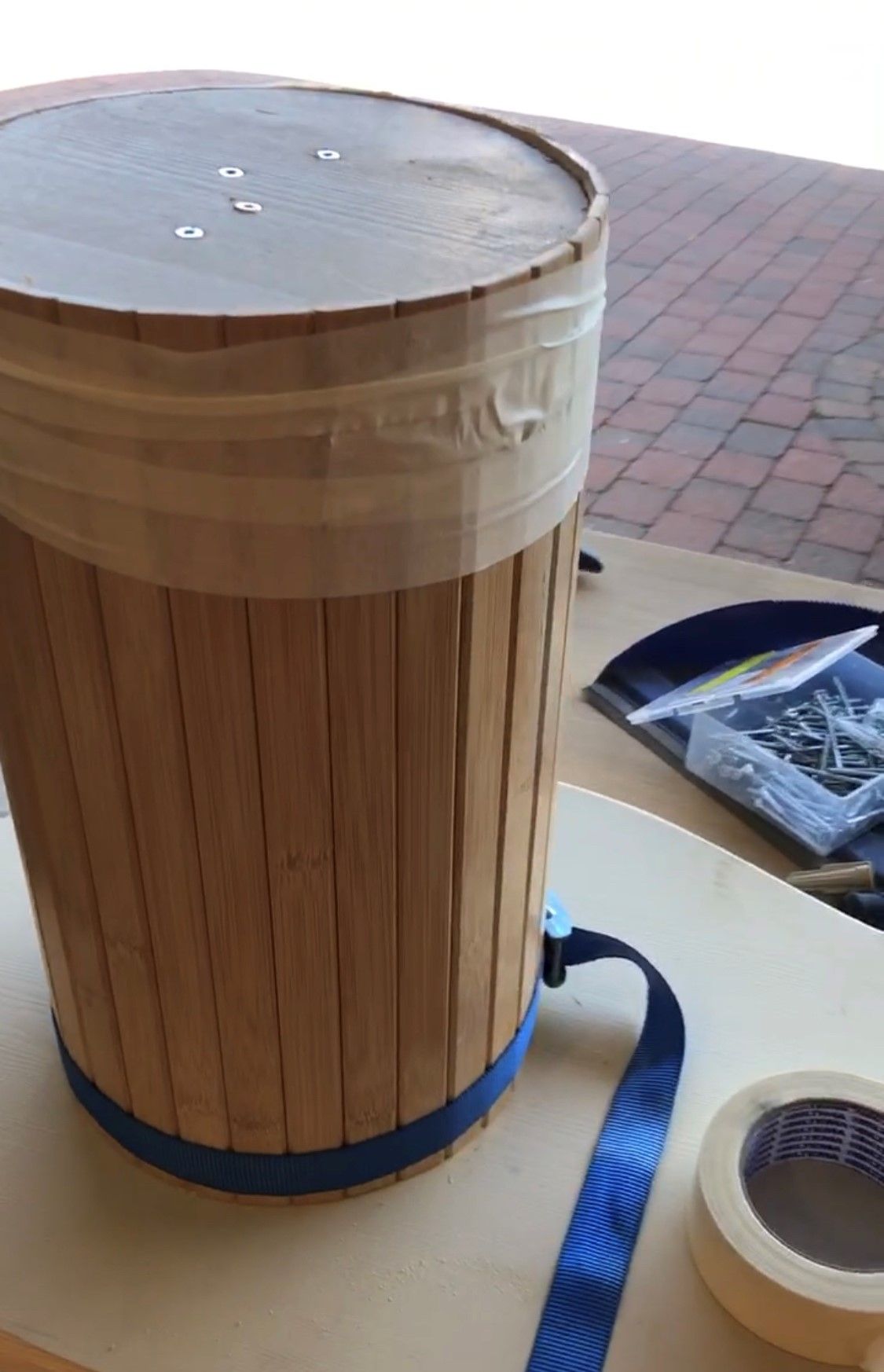 - Wrap the Ikea tray around the inner structure and glue it to the leg, creating the fluted look.