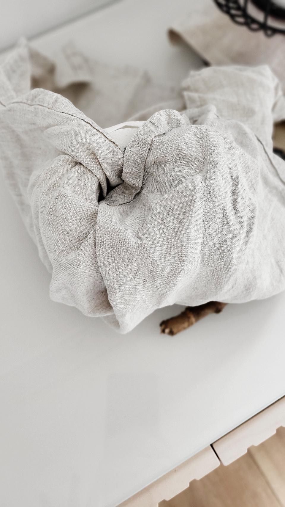 - Place the toilet paper ball into the center of the cloth or serviette and press the ends into the cavity of the roller, gradually forming a little pumpkin shape.