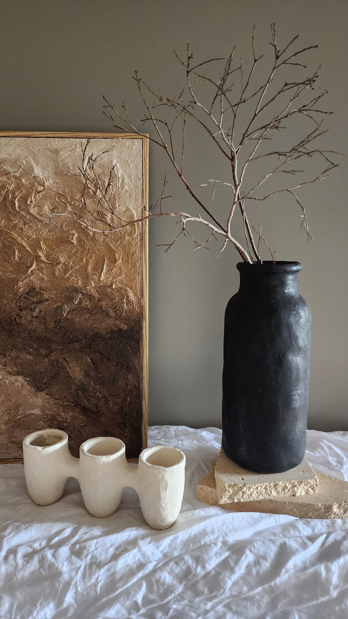 I was wondering how to achieve texture on this kmart Canvas. I had no joint compound at home. So I decided to use a method. I covered the sides of the Canvas and applied first coat of chalk paint. In a bowl I dumped some paper, paper towel, and fabric pieces into my paint.